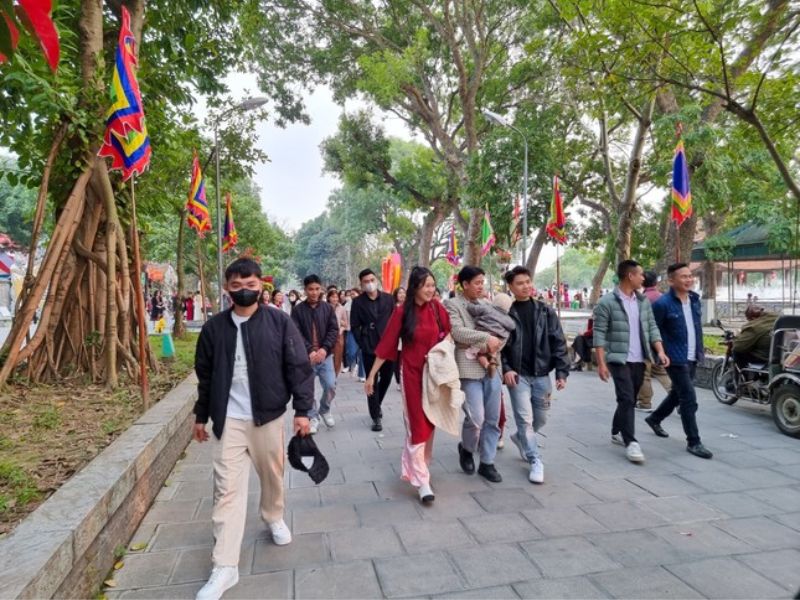 Hình ảnh du khách tham quan chụp ảnh tại Đền Đô
